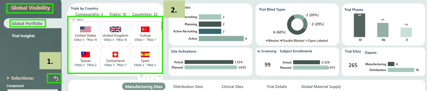 NOTE: On navigation to Trial Insights tab if you are not able to see correct data / if you want to reset the selection on the dashboard then click on